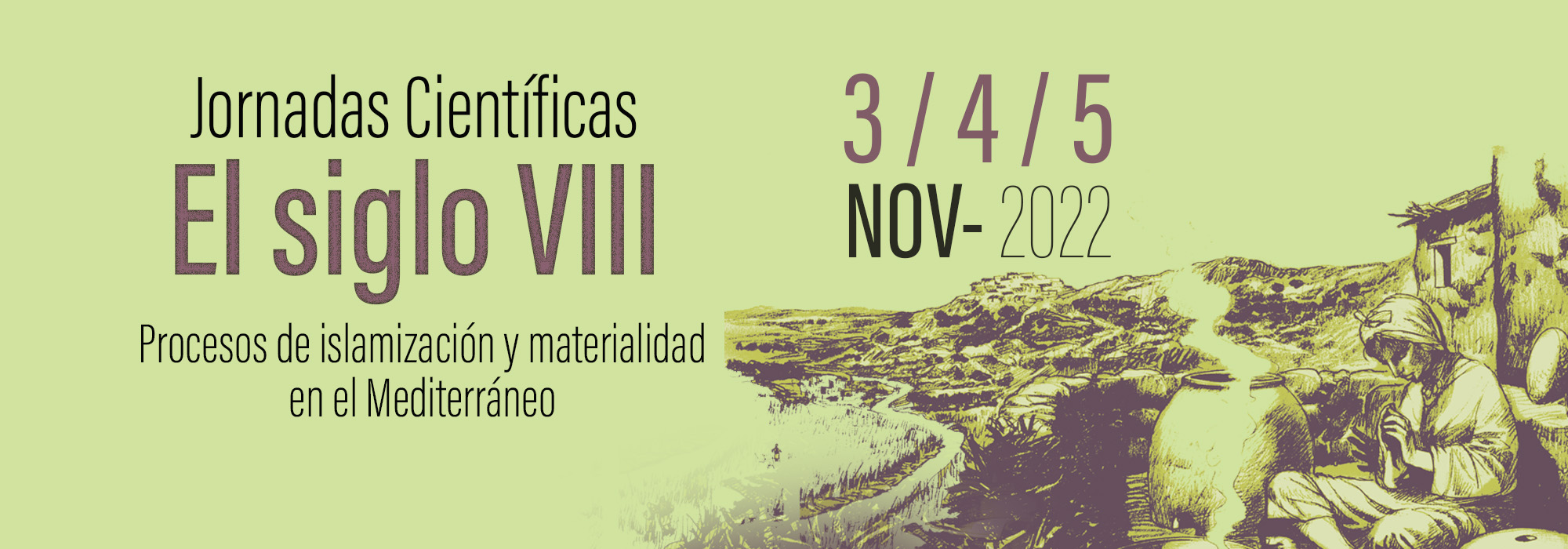 El encuentro El siglo VIII: procesos de islamización y materialidad en el Mediterráneo tiene por finalidad poner en común los nuevos conocimientos que actualmente se tienen en relación con los procesos de islamización temprana que se dan tanto en la Península Ibérica como en el Mediterráneo Occidental a partir de los siglos VII-VIII d.C.